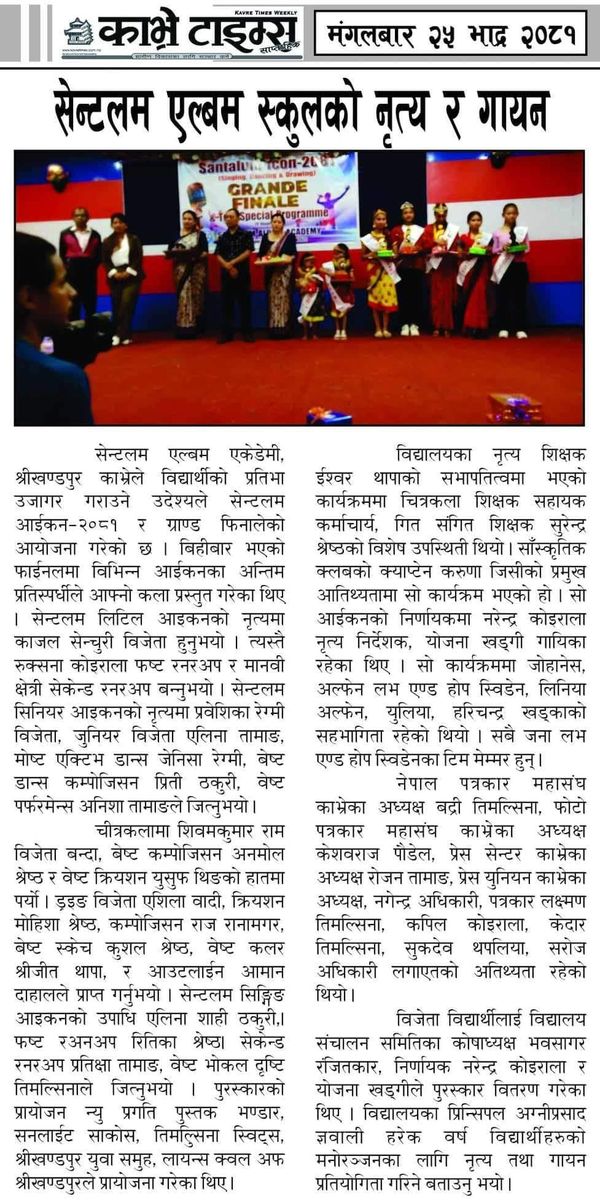 Our student from Love and Hope Nepal has received the "Santalum Senior Drawing Icon, 2024" award. Her achievement was featured in the Kavre Times newspaper. We extend our best wishes for her future success in harnessing her talent.